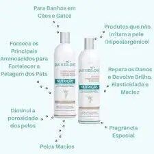 O shampoo Hipoalergênico da Linha Nutrição foi feito para cuidar dos pelos gatos e cães e proporcionar: