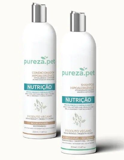 A linha Nutrição da Pureza.Pet possui em seu ativo premium os principais aminoácidos para fortalecer a pelagem dos pets. Diminui a porosidade dos pelos, repara os danos e devolve brilho, elasticidade e maciez.